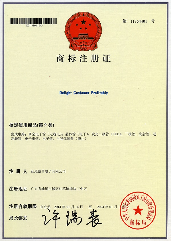 是汕尾德昌電子有限公司在中國(guó)的注冊(cè)商標(biāo)之一,受法律保護(hù),侵權(quán)必究。