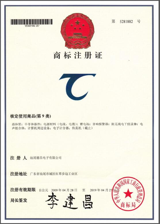 是汕尾德昌電子有限公司在中國的注冊商標之一,受法律保護,侵權(quán)必究。